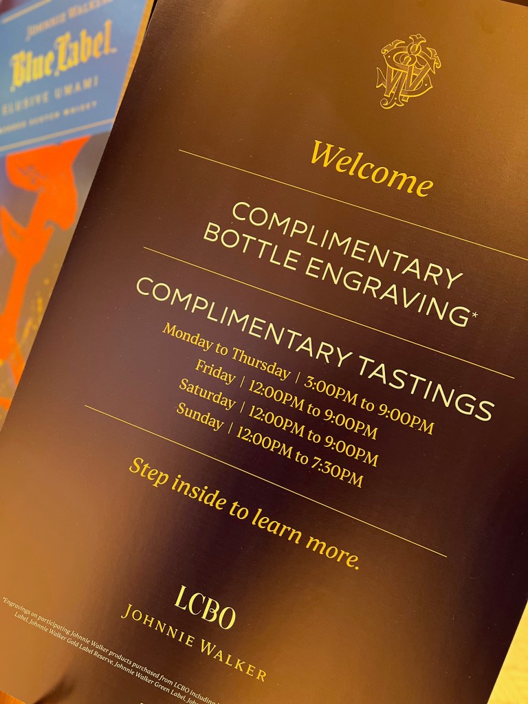 The famous Scotch Whisky, Johnnie Walker, with the Queen’s Majesty seal of approval, graciously presents its Johnnie Walker Blue Whisky Tasting Experience during December 2023 at upscale Yorkdale Mall. In addition to the rare and most premium Johnnie Walker Blue Whisky, whisky connoisseurs are also provided other JW whiskies. from its Black and then Green to taste before the ultimate tasting of the rare and tasty 1/10,000 casks Blue whisky. All this in a beautifully designed pop-up location, the Johnnie Walker Blue Room, within the comfortable confines of Yorkdale Mall. In addition to the complimentary tasting, buyers are also given complimentary engravings on their own Johnnie Walker Blue.