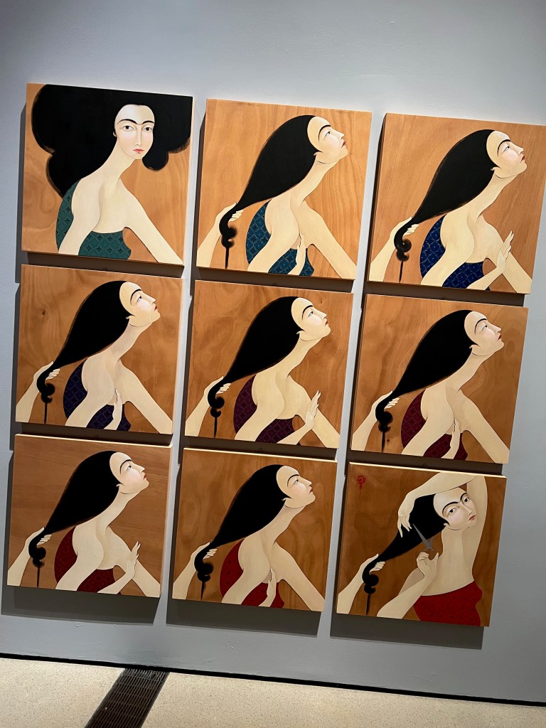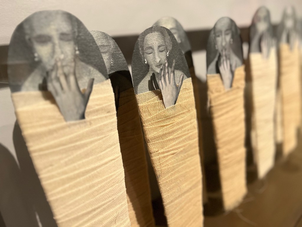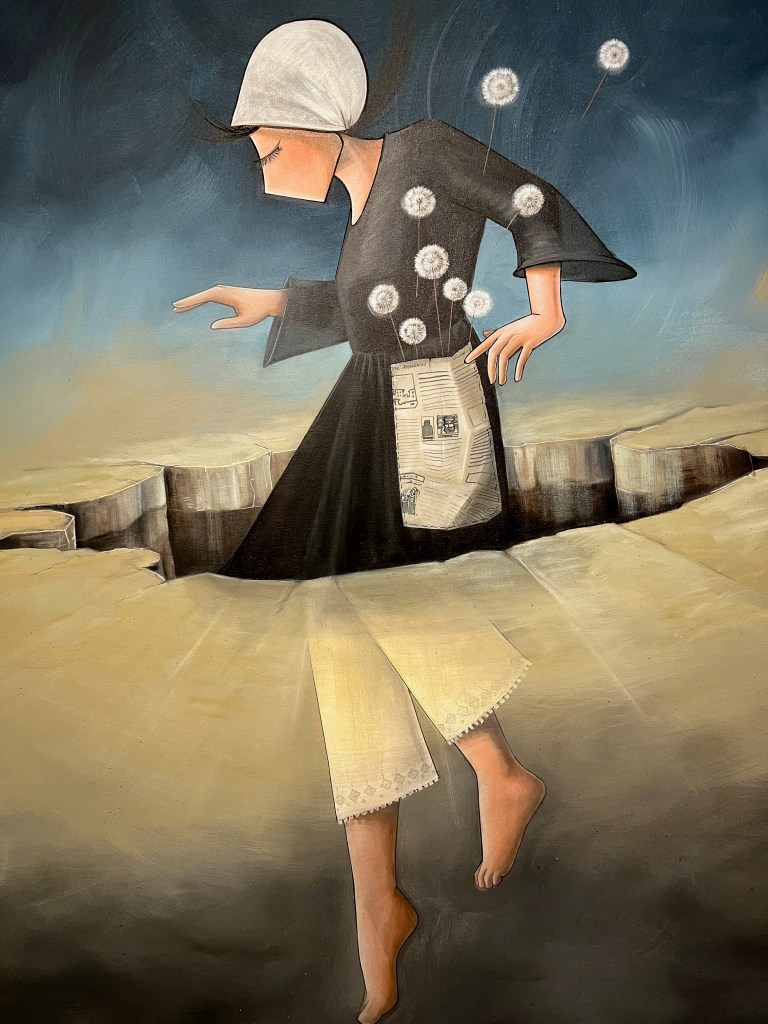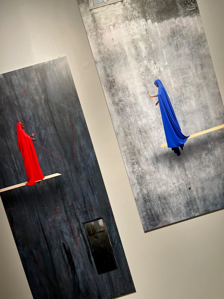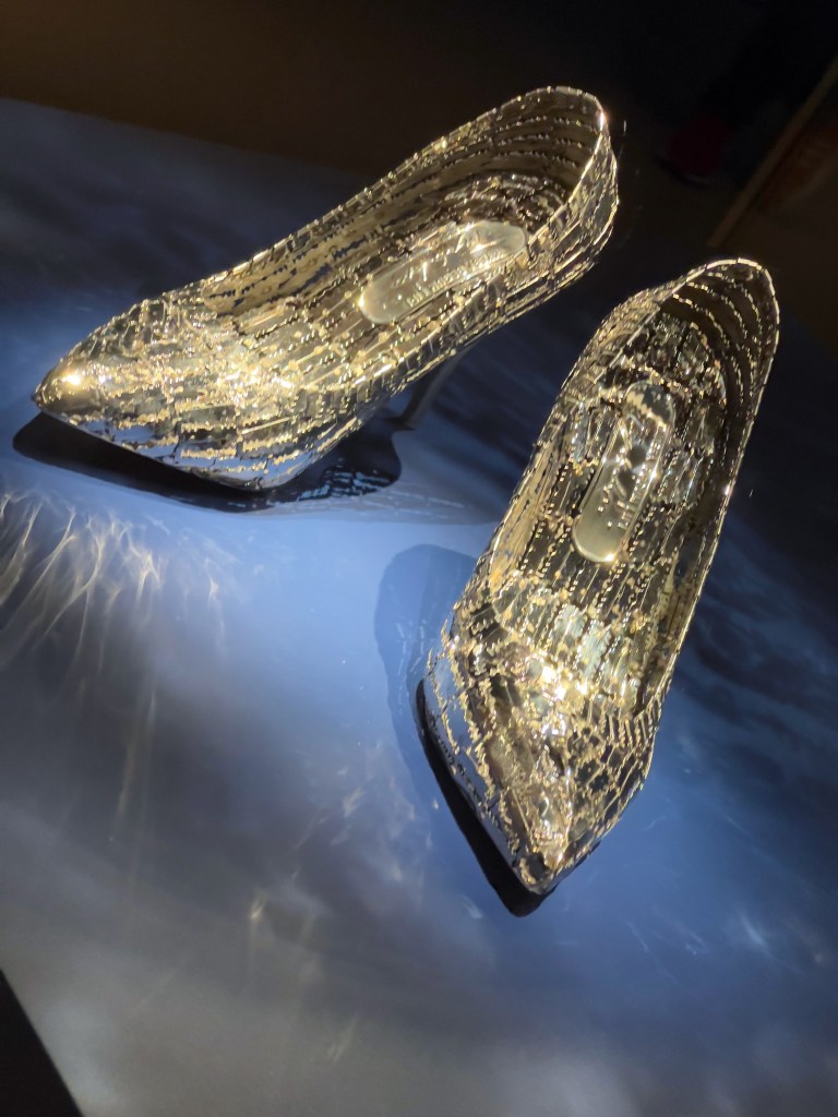 At the Royal Ontario Museum is Being and Belonging, an exhibit of powerful emotional artwork of women in the Islamic world, showing the ingenuity of artistic protest through amazing artistic expression, such as one display showing a seemingly glamorous shiny fashionable blouse accompanied by matching high heels. On closer examination, they are made of razor blades!